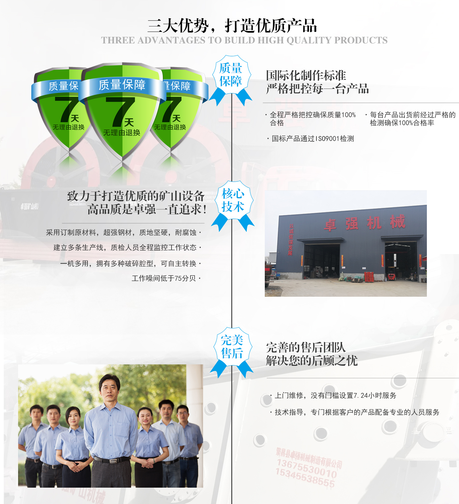 繁昌縣卓強(qiáng)機(jī)械制造有限公司是一家以生產(chǎn)品質(zhì)礦山設(shè)備為主,集設(shè)計(jì)、生產(chǎn)、銷售、售后為一體的廠家。公司位于安徽省蕪湖市繁昌縣高速入口3千米處!主營產(chǎn)品:洗砂設(shè)備、制砂設(shè)備、破碎設(shè)備、輸送設(shè)備、顎式破碎機(jī)及全套配件、圓錐機(jī)配件等全套礦山設(shè)備!卓強(qiáng)嚴(yán)格奉行用戶至上、用心服務(wù)的方針。以全天候24小時(shí),誠心誠意為用戶服務(wù)的經(jīng)營理念,得到了廣大用戶的信賴和支持。熱烈歡迎廣大用戶前來我廠參觀考察!如有需要請及時(shí)與我們聯(lián)系!我們熱忱歡迎您的到來!
